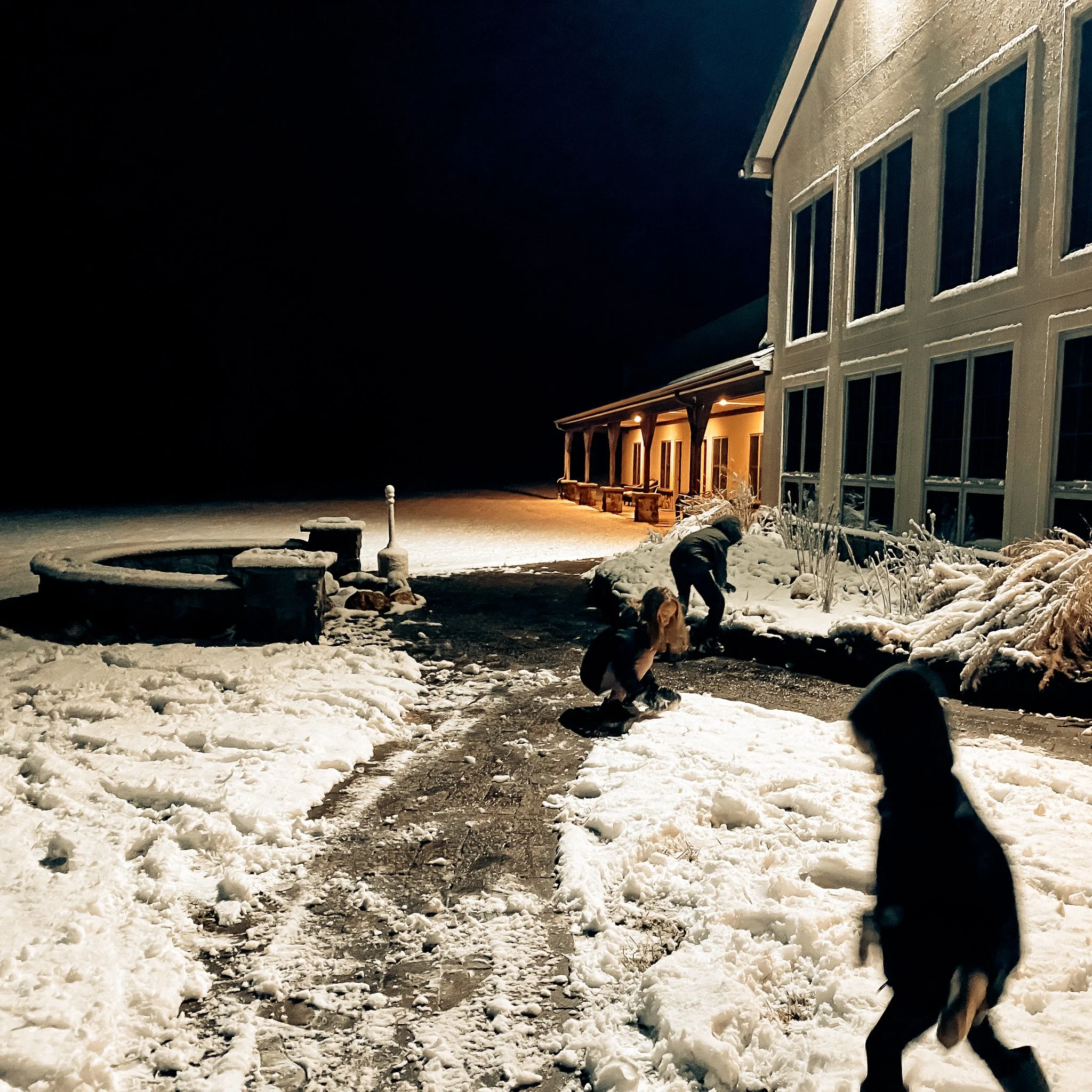At 1:30 in the morning, standing in front of the lodge we’d grown so familiar with, the kids looked at me and asked, “Mom, can we make snowmen?!” After the night we’d just survived, I can’t tell you how grateful I was to watch the snow fall while the kids chased snowflakes on their tongues and rolled snowballs to build snow bunnies in this little town we now call home.